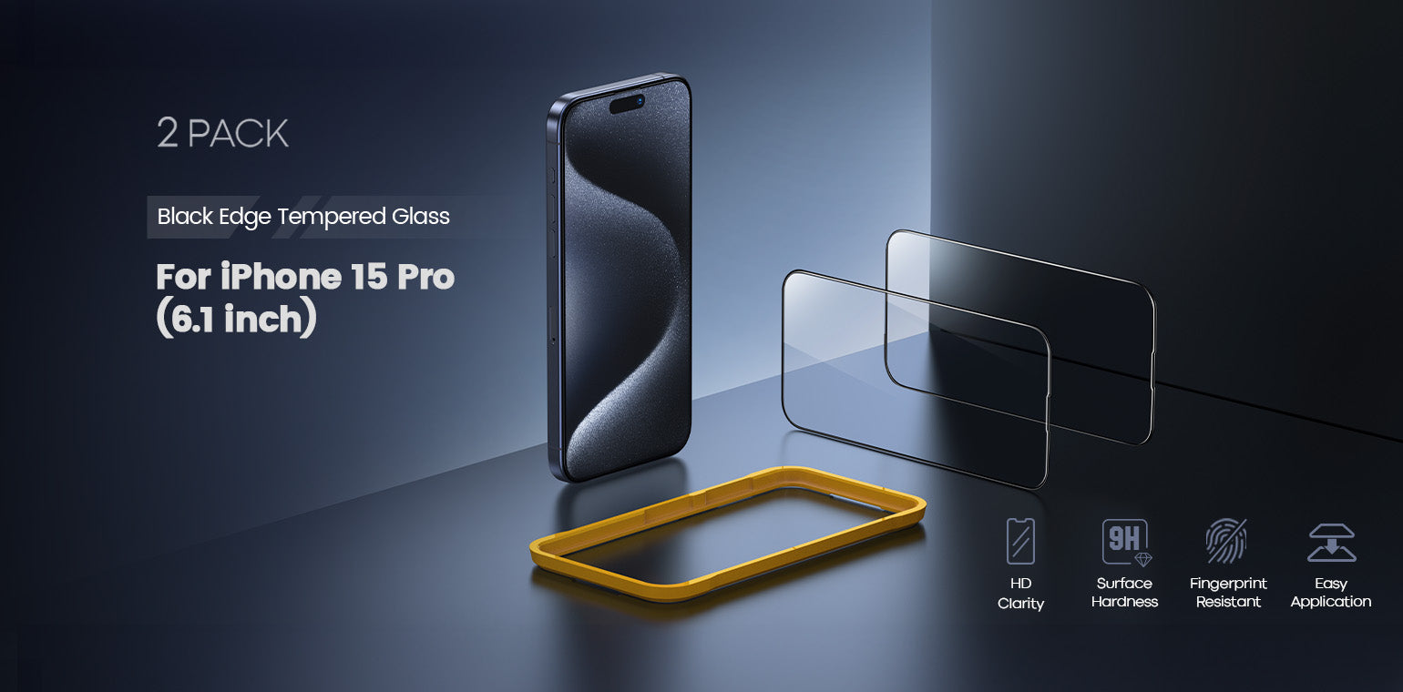 Lamicall 2Pack Professional Screen Protector for iPhone 15 Pro - [Black Edge] [Super Secondly Strengthened Tempered Glass]