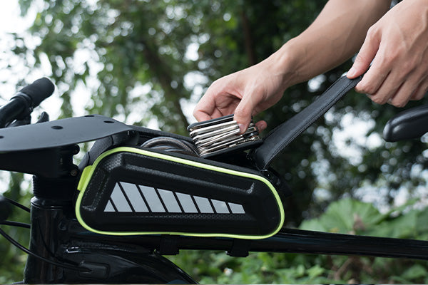 Keep your bike essentials organized and protected from the rain with our 1.8L waterproof storage bag. Designed with two partition storage grids, you'll have plenty of room for your CO2 pumps, locks, keys, and more. This high-quality bag offers excellent rain protection, so you can ride with peace of mind knowing your belongings will stay dry.